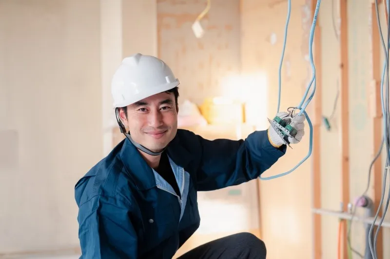 業務件数増加に伴い、新たな正社員の現場スタッフを求人しております。未経験の方にとっても自分のペースでスキルアップできる環境があります。さいたま市を拠点に、若手とベテランが協力しながら様々な現場で積み重ねてきた実績があります。制服と工具の支給、社会保険、さらに育休制度など福利厚生も充実しております。髪型や髪色は清潔感があれば自由です。さらに転勤はないため、風通しの良い職場で、お客様にご満足いただくような電気工事を行うことにやりがいがあります。
